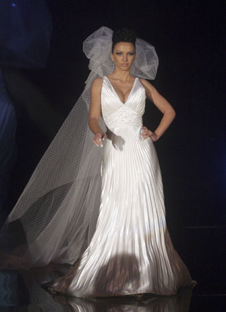 A model presents a gown from Italian wedding dress line, Linea Sposa, during a fashion show by Geraldina Sposa in Tirana May 2, 2008. [Agencies]