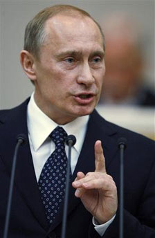 Vladimir Putin answers deputies' questions at the State Duma parliament in Moscow, May 8, 2008. [Agencies]