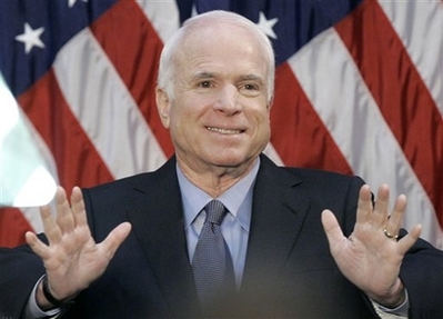 Republican presidential candidate Sen. John McCain, R-Ariz., acknowledges supporters, Thursday, May 15, 2008, in Columbus, Ohio. [Agencies]