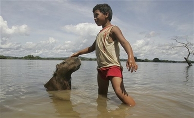 The Belo Monte dam will swallow thick rain forest and harm rare fish, as well as the livelihoods and homes of roughly 15,000 people who live in this remote area of northeastern Para state, critics say. Flush with cash from its roaring economy, Brazil is spending $296 billion in the next two years alone on huge hydroelectric dams, transcontinental roads and other infrastructure to expand industry, boost exports, create jobs and help speed the emergence of Latin America's largest country as a world economic power. But at a time when the world is focused on climate change and Amazon rain forest destruction, Brazil's boom means paving, flooding and stringing power lines through thousands of miles of pristine jungle. Edivaldo Juruna, a subsistence farmer and fisherman who lives in a ramshackle wooden house on a sandbar, worries when he hears the dam will flood 170 square miles of Amazon basin and turn a 90-mile stretch of the river into stagnant puddles. "Up there near the city it's going to flood, but down here it's going to dry up," said Juruna, an Indian whose last name is the same as his tribe. "Everyone's talking about the jobs that will come and that there will be energy for Brazil. But no one's talking about the bad side." |