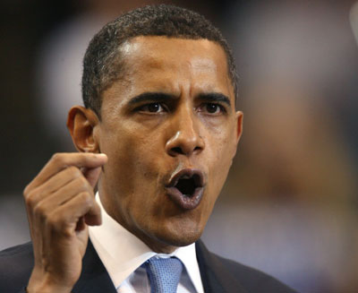 US Democratic presidential candidate Senator Barack Obama (D-IL) speaks at his South Dakota and Montana presidential primary election night rally at the Xcel Energy Center in St. Paul, Minnesota June 3, 2008. [Agencies]