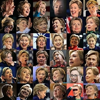 This combination photo shows the many faces of New York Sen. Hillary Clinton while out on the presidential campaign trail. [Agencies]