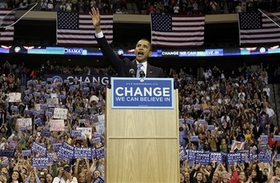 McCain, a four-term Arizona senator seeking to succeed a fellow Republican, uttered the word "change" more than 30 times as he tried to distance himself from President Bush and blister his Democratic rival. Obama uttered the phrase 19 times in a speech that claimed the Democratic presidential nomination.