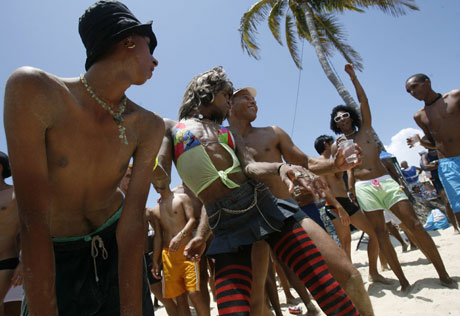 Participants dance during the opening of the gay and lesbian community's summer at a beach on the outskirts of Havana June 14, 2008. [Agencies]