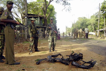 The bomber struck police officers and civilian bystanders on a street in the northern town of Vavuniya, 130 miles (210 kilometers) north of capital Colombo, military spokesman Brig. Udaya Nanayakkara said. Of the 23 wounded, 19 were police and the rest civilians, he said. Nanayakkara blamed the Tamil Tiger rebels for the attack. Rebel spokesman Rasiah Ilanthirayan could not be reached immediately for comment. The Tamil Tigers are banned in the United States and European Union as a terrorist organization, and are said to have carried out more than 240 suicide bombings against political, military and economic targets since the early 1980s. Monday's attack came after a weekend of heavy fighting as Sri Lanka's air force destroyed a Tamil Tiger rebel base in the north, and 32 insurgents and seven soldiers were killed in sporadic ground fighting over two days, the military said. Ilanthirayan said Saturday's airstrikes hit a civilian area, killing two people, but he denied any rebels had died in the fighting. It was not possible to verify the conflicting claims because reporters are not allowed into the northern war zone. Both sides routinely release contradictory reports on the war, exaggerating the damage on the opposing side while playing down their own losses. The Tamil Tiger rebels have fought since 1983 to create an independent homeland for Sri Lanka's ethnic minority Tamils, who have faced decades of marginalization by governments controlled by majority ethnic Sinhalese. Soldiers have been trying for the past few months to push into the rebels' de facto state in the north from four fronts. The government has promised to capture the rebel territory by the end of this year.