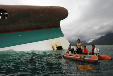 Manila -- Divers wriggled into an upside-down ferry Tuesday and found bodies but no survivors three days after the vessel capsized during a powerful typhoon with more than 800 people aboard, officials said. The bodies included what appeared to be one of the ship's officers still clutching a radio, coast guard Commodore Luis Tuason said, adding that two bodies had been retrieved. Hundreds of people are feared to have been trapped when the ship suddenly tilted and went belly up Saturday at the height of the powerful storm that left 163 people dead in flooded communities in the central Philippines. Philippines Navy spokesman Lt. Col. Edgard Arevalo would not speculate on whether anyone might be found alive but indicated the amount of time passed made it unlikely. He said the ship's interior was too dark to determine how many bodies were there and lighting was being brought in. "Most of the bodies were floating inside. They were trapped when the seven-story ship suddenly tilted and capsized," he told dzBB radio. Arevalo said it was possible some passengers could have survived initially, but the roiling seas from Typhoon Fengshen had kept rescuers at bay too long and suffocation may have claimed some lives. He said some of the bodies had life vests but many passengers apparently hesitated to jump into the "turbulent waters" before the ship capsized because "it happened too sudden." Survivors said the ship listed and went down in a half-hour or less. "If there are survivors, they could only be found in the forward portion, because if the vessel is no longer watertight, water would enter all its spaces that are submerged," Arevalo said. Coast guard chief Adm. Wilfredo Tamayo said about 20 coast guard and navy divers were at the scene and that the US Navy ship Stockham had arrived with frogmen and search-and-rescue helicopters. He said the divers had broken windows and used every other gap they could find to slip inside the 23,824-ton Princess of Stars, which has only one end jutting from the water off Sibuyan island. Arevalo said the priority now is how to extricate the bodies. He said options include attaching weights to them and then pulling them out, or cutting the hull -- a prospect complicated by a cargo of bunker oil that could leak and turn the human disaster into an environmental one. On Sunday, divers heard no response when they hammered on the hull, but officials had refused to give up. Only about three dozen ferry survivors have been found, including 28 who drifted at sea for more than 24 hours, first in a life raft, then in life jackets, before they were found Sunday about 80 miles to the north in eastern Quezon province. Officials initially reported 747 passengers and crew were aboard the ferry, but said Monday that it was carrying about 100 more. Six bodies, including those of a man and woman who had bound themselves together, have washed ashore, along with children's slippers and life jackets. While some relatives tearfully waited for news, others angrily questioned why the ship was allowed to leave Manila late Friday for a 20-hour trip to Cebu with a typhoon approaching. Sulpicio Lines said it sailed with coast guard approval. The government ordered the company to suspend services pending an investigation and a check of its other ships' seaworthiness. Debate also began anew on safe-sailing rules in a country prone to storms -- Fengshen was the seventh typhoon this year -- and dependent on ferries to get around the sprawling archipelago. |