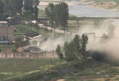 North Korea destroys nuclea cooling tower