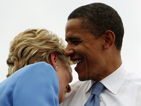 They came together in this hamlet where each won 107 votes in January's primary. Body language rivaled campaign rhetoric as attention-getter of the day. And a pair rendered distant by a marathon campaign acted like teammates, alternately exhorting the rank-and-file to put any recriminations behind them. Clinton noted that they had stood "toe to toe" against each other in a primary season fight that began almost two years ago and declared the time has come to "stand shoulder to shoulder" against the GOP. They seemed equally determined to regain a White House that their party hasn't seen since her husband, President Clinton, left at the start of 2001. "To anyone who voted for me and is now considering not voting or voting for Sen. (John) McCain, I strongly urge you to reconsider," said Clinton, beseeching her supporters to join with Obama's "to create an unstoppable force for change we can all believe in." In turn, Obama praised both Clinton and her husband as allies and pillars of the Democratic Party. "We need them. We need them badly," Obama said. "Not just my campaign, but the American people need their service and their vision and their wisdom in the months and years to come because that's how we're going to bring about unity in the Democratic Party. And that's how we're going to bring about unity in America." Moments earlier, the two snaked their way through some 6,000 people who gathered in a wide-open field and overflowed some bleacher seats in this town of 1,700. Obama is seeking to become the country's first black president; Clinton had sought to become the first woman to win the White House.