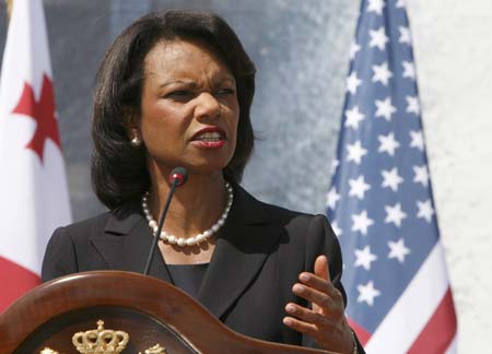 US Secretary of State Condoleezza Rice speaks at a joint news conference after talks with Georgia's President Mikheil Saakashvili in Tbilisi July 10, 2008. [Agencies]