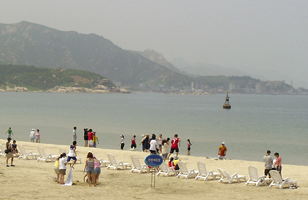 A general view of a swimming beach at the Mount Kumgang resort in DPRK, just north of the border on the east coast, is seen in this picture taken on July 15, 2005 and released by Yonhap news agency on July 11, 2008. A South Korean woman tourist in her 50s was shot and killed at the mountain resort in DPRK after she wandered into a military area, a South Korean government official said on Friday. [Agencies]
