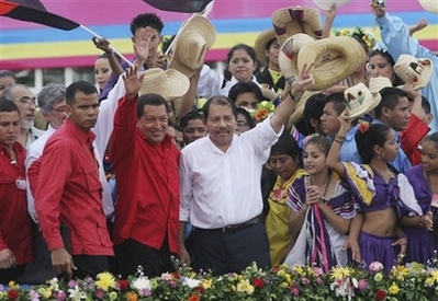 Chavez says Washington and the European Union "must respect the sovereignty of the Latin American people." Chavez also says a widely criticized new EU rule on illegal immigration will be a central part of his agenda during an upcoming European tour. He repeated previous warnings that Venezuela could expel investors from countries that apply the new rules. Chavez spoke Saturday at a 29th anniversary celebration of the Sandinista revolution in Nicaragua. Nicaraguan President Daniel Ortega, Honduras' Manuel Zelaya and Paraguay's President-elect, Fernando Lugo, also attended the festivities. |