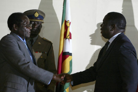 The MOU envisaged that "the dialogue will be completed within a period of two weeks from the date of signing of this MOU." It also requires each party to issue a statement condemning the promotion and use of violence and call for peace in the country and shall take all measures necessary to ensure that the structures and institutions it controls are not engaged in the perpetration of violence The signing of the deal made a major breakthrough in the development of ending the southern African country's political crisis. UN chief Ban Ki-moon welcomed the signing of the MOU, saying it provides a framework for formal talks to end the political crisis in the country. The statement said that the secretary-general encourages all sides to engage, in good faith, in serious talks that would lead to a lasting solution to the political crisis and address the urgent economic and humanitarian needs of the Zimbabwean people. "The secretary-general also urges the enabling of humanitarian operations in order to allow the provision of assistance to those in dire need," said the statement. Speaking at the signing ceremony, President Mugabe said his party and the opposition had agreed to amend the country's constitution. Mugabe also urged negotiations to be held free from influence and pressure from Europe and the United States, which are seeking new sanctions on Zimbabwe. For his part, Tsvangirai promised that he would act to put the interests of Zimbabwe at the forefront. Mbeki said the deal committed both sides to an intense process to try to complete substantive negotiations as quickly as possible, adding that all parties involved recognized the urgency to hold the negotiations, which is aimed at ending the political crisis facing the country. Mugabe was declared winner of the June 27 presidential run-off by the Zimbabwe Electoral Commission, a result rejected by Tsvangirai, who received a leading number of votes in the first round of polls but failed to obtain an absolute majority. Tsvangirai boycotted the run-off, citing various reasons, including political violence. |