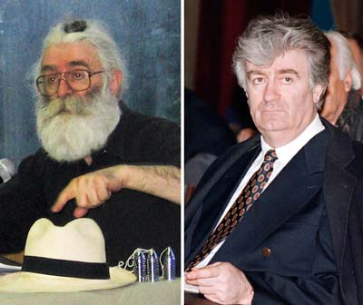 A combination photo shows Bosnian Serb wartime leader and indicted war crimes suspect Radovan Karadzic (L) in an undated recent file photo and (R) attending a parliamentary session in the Republik of Srpska in Bosanski Samac February 13, 1995. Karadzic was arrested in a suburb of Belgrade where he lived posing as a doctor of alternative medicine, sporting long hair, a beard and glasses to hide his face, officials said July 22, 2008. [Agencies]