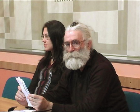 Bosnian Serb wartime president Radovan Karadzic (R), posing as a doctor of alternative medicine called Dr. Dragan David Dabic and attending a medical lecture, is seen in this video grab released July 22, 2008. The footage released by Healthy Life Magazine was taken in January 2008. Karadzic, indicted for genocide in the Bosnia war, was captured in disguise near Belgrade after 11 years on the run and had been working as a doctor, Serbian officials said on Tuesday. [Agencies]