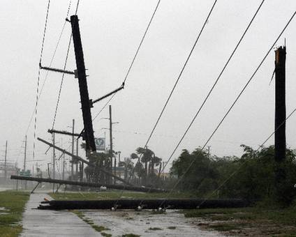 Power lines are snapped by the winds of Hurricane Dolly in Port Isabel, Texas July 23, 2008. [Agencies]
