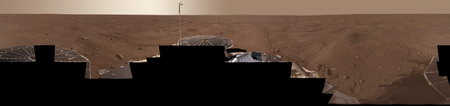 A 360 degree panoramic view of Mars taken by NASA's Phoenix Mars Lander is shown in this undated handout photo released to Reuters July 31, 2008. NASA scientists said on Thursday they had definitive proof that water exists on Mars after further tests on ice found on the planet in June by the Phoenix Mars Lander. [Agencies]