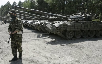 Russian commanders said yesterday their forces had begun regrouping around Georgian cities, but the Russian Defense Ministry said the troop movements were just preparatory. The French statement said Sarkozy warned Medvedev of "serious consequences" for Russia's relations with the EU if the accord were not implemented rapidly and competely. It said Medvedev had assured him that the Russian withdrawal would begin Monday. "President Medvedev announced to the President of the Republic that the withdrawal of Russian troops would begin tomorrow, Monday Aug 18 in the middle of the day," the statement said. The Kremlin confirmed the conversation and said Medvedev had informed Sarkozy "that from tomorrow Russia will begin the withdrawal of the military contingent which was moved to reinforce Russian peacekeepers after the Georgian aggression against South Ossetia... to the security zone and to the territory of South Ossetia." |