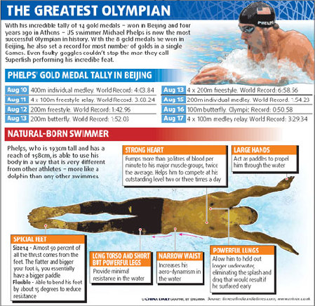 "Nothing is impossible," Phelps said later. "With so many people saying it couldn't be done, all it takes is an imagination, and that's something I learned and something that helped me.