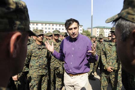 Georgian President Mikheil Saakashvili visits a military unit in Tbilisi, August 19, 2008. [Agencies]