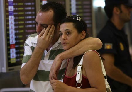 Relatives of a passenger on the Spanair jet which crashed arrive at Barajas airport in Madrid August 20, 2008. [Agencies]