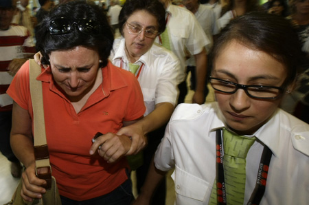 A relative of a passenger of Spanair arrives at Barajas airport in Madrid August 20, 2008. A jetliner heading to the popular Canary Islands vacation resort crashed during takeoff Wednesday, turning a wooded area off the end of a runway into a hellish scene of charred bodies and smoldering wreckage. Some 153 were believed dead. [Agencies]