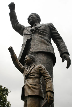 Statues of former South Africa President Nelson Mandela that was unveiled at the Groot Drakenstein prison in Paarl near Cape Town August 21, 2008. Mandela was finally released from the prison in February 1990, ending his 28 year incarceration. [Agencies]