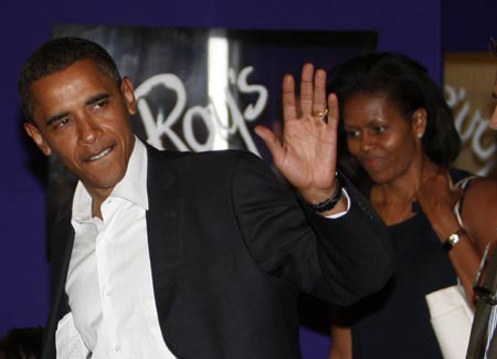 US Democratic presidential candidate Senator Barack Obama (D-IL) and his wife Michelle leave a restaurant in Chicago August 22, 2008. [Agencies]