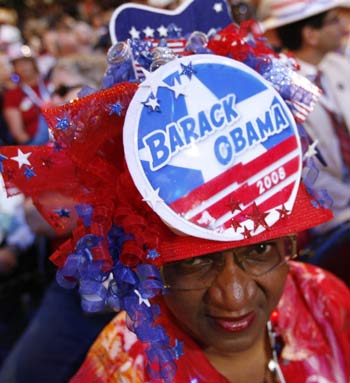 Updated: 2008-08-28 11:53 Florida delegate Lavon Bracy shows off her Barack Obama hat at the 2008 Democratic National Convention in Denver, Colorado August 27, 2008. US Senator Barack Obama (D-IL) is expected to accept the Democratic presidential nomination at the convention on August 28. [Agencies] |
