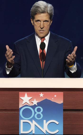 Updated: 2008-08-28 11:53 US Sen. John Kerry (D-MA) addresses the 2008 Democratic National Convention in Denver, Colorado, August 27, 2008. US Senator Barack Obama (D-IL) is expected to accept the Democratic presidential nomination at the convention on August 28. [Agencies] |