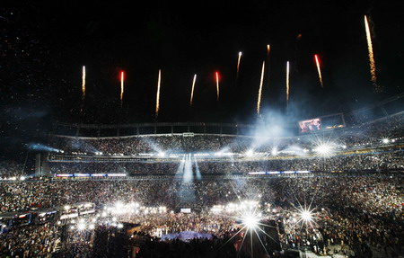 Fireworks go off after US Senator Barack Obama (D-IL) finishes his speech at the 2008 Democratic National Convention in Invesco field in Denver, Colorado August 28, 2008. [Agencies]Obama sketches promise of America