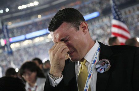 A Mississippi delegate cries after the acceptance speech of Democratic presidential nominee U.S. Senator Barack Obama (D-IL) at the 2008 Democratic National Convention in Denver, Colorado August 28, 2008.
