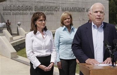 In an interview with NBC, he said it was possible he would make his acceptance speech not from the convention podium but via satellite from the Gulf Coast region. Campaign manager Davis told reporters inside the convention hall that the opening program on Monday would be "business only and will refrain from political rhetoric." To help those in need, he said, "We are working with the delegations, financial people, finance committees, many other concerned individuals to do what we can to raise money for various charities that operate in the Gulf Coast region." / As for the convention schedule, he added that further adjustments would be made on a day-to-day basis. McCain said of his briefing in Mississippi: "I'm happy to report to you that the coordination and the work that's being done at all levels appears to be excellent." He cited remaining challenges in communications and search and rescue operations, but emphasized that the response seemed to be going more smoothly than the one three years ago. The Bush administration's handling of that storm contributed to a plunge in the president's approval ratings that helped the Democrats win control of Congress in 2006. The uncertainty contrasted with a state of readiness inside the Xcel Center, a hockey arena transformed into a made-for-televison red-carpeted convention hall. Thousands of red, white and blue balloons nestled in netting high above the floor -- to be released during final-night festivities if the Republicans decide to go ahead with them. Outside, police took nine people into custody for crossing a security barrier in an anti-war march. The nine, including two women in their 70s, were charged with trespassing, according to Doug Holtz, a St. Paul police commander. Emphasizing their concern about the hurricane, McCain and his newly named running mate traveled to Mississippi for a tour of the state's emergency management center. "I pledge that tomorrow night, and if necessary throughout our convention, we will act as Americans, not as Republicans," McCain told reporters moments later. The events temporarily overshadowed a more traditionally political pre-convention debate over McCain's decision to name Palin to his ticket. She was mayor of small-town Wasilla, Alaska, for six years before she became governor in December 2006. Responding to a question after his hurricane-related remarks, McCain made a ringing defense of Palin, who Democrats argue has less experience than their presidential candidate, Barack Obama. "I thin Sen. Obama, if they want to do down that route, in all candor, she has far, far more experience than Sen. Obama does," McCain said. He cited Palin's stint as governor of a "state that produces 20 percent of America's energy" as well as her previous membership in the PTA and her time spent on the city council and in the mayor's office in Wasilla,a town of fewer than 7,000 people outside Anchorage. By contrast, he said Obama "was a community organizer when she was in elected office. He was in the state Senate and voted 130 times present. He never took on his party on anything. She took on a party and the old bulls and the old boy network and she succeeded." Palin has frequently clashed with fellow Republicans in her state, and won office after denying an incumbent GOP governor renomination to a new term in office. But Democratic Sen. Chris Dodd of Connecticut said McCain's selection was merely designed to appease the hard-right conservatives in the Republican Party. "His knees buckled" when it came time to picking a running mate, Dodd said of McCain in an appearance on CNN. Democrats, too, decided to tone down their convention-week efforts. Party spokesman Brad Woodhouse said the Democrats had canceled a "More of the Same" rally that had been slated for Monday. Obama said he was ready to encourage his supporters to assist any victims of the hurricane. "I think we can activate an e-mail list of a couple of million people who want to give back," he said. With millions of Gulf Coast residents fleeing the approaching storm, Chadwick Melder, a delegate from Baton Rouge, said he was taking advantage of an offer from the campaign to fly his family out of harm's way. "I'm trying to get my family out of there and stay here for the week," said Melder, although he added, "I have responsibilities here as well." |