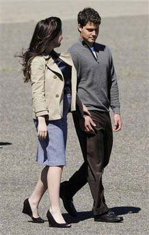 Bristol Palin, daughter of Republican vice presidential candidate Sarah Palin, walks with her boyfriend, Levi Johnston, as they await the arrival of Republican presidential candidate John McCain in Minneapolis for the Republican National Convention in St. Paul, Minn., Wednesday, Sept. 3, 2008. [Agencies]