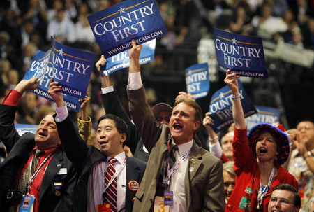 Delegates cheer during the third session of the 2008 Republican National Convention in St. Paul, Minnesota September 3, 2008. [Agencies]