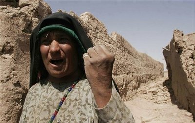 In this Aug. 23, 2008 file photo, an Afghan woman shouts anti-US slogans in front of her destroyed home in Azizabad, the village in Shindand district of Herat province, Afghanistan. Afghans are deeply bitter about American and NATO forces because of errant bombs, heavy-handed searches and seizures and a sense that the foreigners do not understand their culture. [Agencies]