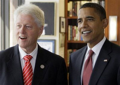 NEW YORK - Barack Obama and former President Clinton talked for two hours on Thursday, their first meeting in a White House race that had once bitterly divided them. Clinton predicted that Obama will win the presidency "pretty handily." Their conversation started with small talk about the former president's commute to his Harlem office and ended after a lunch of sandwiches, flatbread pizza and salad from Cosi. "They discussed the campaign briefly, but mostly talked about how the world has changed since September 11, 2001," their spokesmen said in a joint statement. The meeting came on the seventh anniversary of the attacks and shortly before Obama was to visit Ground Zero with Republican presidential rival John McCain. Reporters were allowed in at the beginning of the meeting in Clinton's 14th floor office, but the former president kept his answers short when he was asked about his involvement with Obama's campaign this fall. He noted an already announced trip Sept. 29 to Florida. Obama said, "We're putting him to work." Asked if he would be campaigning beyond that, Clinton said, "I've agreed to do a substantial number of things, whatever I'm asked to do." Before reporters were ushered out, Clinton was asked where he sees the race between Obama and McCain. "I predict that Senator Obama will win and win pretty handily," he said. Obama interjected: "You can take it from the president of the United States. He knows a little something about politics." Obama and Bill Clinton appeared less friendly toward each other at times during Obama's Democratic primary battle with Clinton's wife, Sen. Hillary Rodham Clinton of New York. After Obama clinched the party's nomination, both Clintons gave strong speeches in Obama's favor during the party convention in Denver. Obama's visit to Clinton's Harlem office, which overlooks Central Park, sparked excitement in the neighborhood, with people crowding around police barricades that shut off the block. The two men briefly appeared in front of the building, where a large group had been waiting for hours in hopes of a glimpse. People screamed loudly and snapped cell phone pictures when the two emerged. Obama ducked back in the building with Clinton after a few waves but without shaking hands. Their spokesmen said the two men were complimentary of each other's work, with Obama praising the Clinton Foundation, and Clinton applauding the candidate's campaign. "They also spoke about what the next president can do to help make the economy work for all Americans, as it did under President Clinton, and ensure safety and prosperity far beyond the coming the election," their joint statement said. |