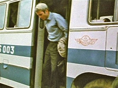 AP Television News acquired exclusive worldwide distribution rights to the SVT footage from March 14, 1973, and edited it into a 2-minute, 14-second video of a remarkable day in the life of the Republican candidate. SVT posted a 39-second clip on its Web site. The AP footage begins with prisoners being led out of a Hanoi compound one by one, then climbing onto buses taking them to the handover area. Each prisoner is dressed in identical blue-gray, long-sleeved shirts and dark pants, and carries a beige jacket. Up to 16 US POWs are seen. McCain grimaces as he steps off a bus with other prisoners. He has a pronounced limp and needs to put both feet on the same step before continuing but is not using crutches. The prisoners stand in rows until a Vietnamese official calls their name. McCain, like other prisoners, briskly walks up to salute and shake hands with US military officers. Although only 37, he has prematurely white hair. Then the prisoners are seen walking to a US plane. APTN kept to the chronological order of the video. "This summer when I was preparing the release of my book we were putting together a DVD with some of my reports from Vietnam and then I thought, 'I wonder if we have McCain here?'" Eriksson said. Per Yng, head of SVT's national news, confirmed that Eriksson found the film in the network's archives. "It's our material. So we can confirm its authenticity," Yng said.