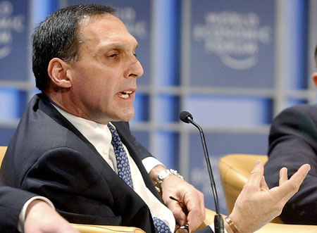 Richard Fuld Jr., Chairman and CEO of Lehman Brothers, USA, speaks at the World Economic Forum in New York in this February 1, 2002 file photo. Not long ago, when Lehman Brothers CEO Fuld talked about "everyone's worst nightmare" he was referring to a massive fraud at French bank Societe Generale. Just a few months later Fuld, a 30-year-veteran of Lehman who had ably steered it through near-death experiences like the Asian debt crisis of 1998, is living his own worst nightmare as the venerable investment bank stands on the verge of collapse. [Agencies]