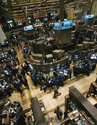 Traders work on the floor of the New York Stock Exchange September 17, 2008. US stocks extended losses on Wednesday, sending the S&P 500 and the Nasdaq off more than 3 percent, as a spike in inter-bank lending rates fanned fears that credit might be drying up in the global financial system. [Agencies]