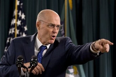 Treasury Secretary Henry Paulson briefs reporters about efforts to heal the crisis in the U.S. financial markets, Friday, Sept. 19, 2008, at the Treasury Department in Washington. [Agencies]