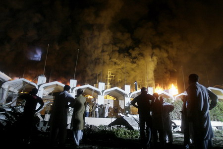 Updated: 2008-09-21 09:02 ![]() People gather at the site of a bomb blast outside the Marriott hotel in Islamabad September 20, 2008. A suicide car bomber attacked the Marriott Hotel in the Pakistani capital, Islamabad, on Saturday, killing at least 53 people and turning the hotel into an inferno, police said. [Agencies] |