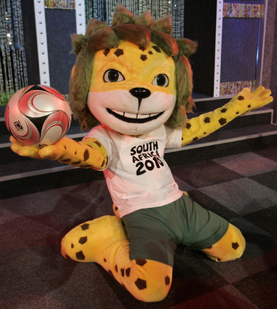 The South Africa official 2010 mascot, a leopard known as Zakumi, is seen during a launch in Auckland Park, Johannesburg September 22, 2008. The mascot for the 2010 World Cup in South Africa was unveiled in Johannesburg on Monday, with Fifa opting for a leopard for the showpiece football tournament's first visit to Africa. "Zakumi is young, vibrant, energetic, smart, self-confident, sociable and ambitious, but also warm-hearted," Local Organising Commitee CEO Danny Jordaan said at the televised launch. [Agencies]