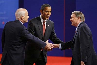 McCain accused his younger rival of an "incredible thing of voting to cut off funds for troops in Iraq and Afghanistan," a reference to legislation that cleared the Senate more than a year ago. Obama disputed that, saying he had opposed funding in a bill that presented a "blank check" to the Pentagon while McCain had opposed money in legislation that included a timetable for troop withdrawal. Obama opposed the invasion of Iraq in 2002, before he was a member of Congress, while McCain voted in the Senate to authorize the war. "You were wrong" on Iraq, Obama repeated three times in succession. "John, you like to pretend the war began in 2007." McCain replied that Obama has refused to acknowledge the success of the troop buildup in Iraq that McCain recommended and Bush announced more than a year ago. The two presidential candidates stood behind identical wooden lecterns on stage at the performing arts center at the University of Mississippi for the first of three scheduled debates with less than six weeks remaining until Election Day. The two vice presidential candidates will meet next week for their only debate, and Obama and McCain each put in a plug for his own running mate. |