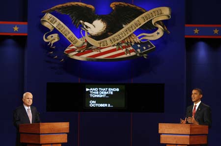 Updated: 2008-09-27 17:10 WASHINGTON - Democrat Barack Obama and Republican John McCain stretched the facts in accusing each other of kowtowing to the oil industry and sprinkled other dubious assertions across the landscape of public policy in their first presidential debate. McCain's plan to cut the corporate tax rate to 25 percent from 35 percent across the board so as to spur job creation was boiled down by Obama into a $4 billion tax break for Big Oil, as if no other companies or workers would benefit.