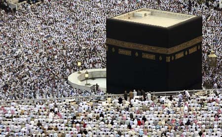 Hundreds of thousands of Muslims circle the Kaaba inside the Grand Mosque to perform the Eid al-Fitr prayer in Mecca September 30, 2008. The Eid al-Fitr festival marks the end of the Muslim fasting month of Ramadan. [Agencies]