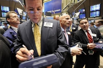 "I'm not getting the sense that investors are going to be jumping in with both feet until there is some kind of resolution on the plan," said James Maguire, an NYSE floor trader with Christopher J. Forbes. "If there's a no vote, we're going to see a lower overall drift in stocks. It will be a slow bleed." Tuesday marked the final session of the third quarter -- and what is typically the worst month for the stock market -- so some portfolio managers might have been eager to dress up their performance. The Dow rose 485.21, or 4.68 percent, to 10,850.66 after falling nearly 7 percent on Monday to its lowest close in nearly three years. It was the largest point drop and 17th largest percentage drop in the blue chip index. The percentage decline was far less severe than the 20-plus-percent drops seen in the stock market crash of October 1987 and before the Great Depression. Broader stock indicators also bounced higher. The Standard & Poor's 500 index recovered 58.35, or 5.27 percent, to 1,164.74, and the Nasdaq composite index rose 98.60, or 4.97 percent, to 2,082.33. The S&P fell 8.79 percent Monday, while the Nasdaq lost 9.14 percent. The yield on the 3-month Treasury bill rose Tuesday to 0.89 percent from 0.14 percent late Monday. The yield fell Monday as investors clamored for the safety of government debt. The yield on the benchmark 10-year Treasury note, which moves opposite its price, rose to 3.83 percent from 3.58 percent late Monday. The dollar rose against other major currencies and gold prices advanced. While investors focused on what might come from Washington this week, Wall Street was cheered by several economic readings. A private research group reported that consumer confidence rose unexpectedly in September. The Conference Board said Tuesday its Consumer Confidence Index rose to 59.8 from a revised 58.5 in August; Wall Street had expected a reading of 55.5, according to Thomson/IFR. The reading, which doesn't reflect attitudes following Monday's steep stock market sell-off, remains near a 16-year low. The Chicago Purchasing Managers' index, which measures business conditions across Illinois, Michigan and Indiana, came in at 56.7 compared with 57.9 in August -- a second straight month of a strong reading. Light, sweet crude rose $4.27 to settle at $100.64 on the New York Mercantile Exchange. Oil fell more than $10 a barrel Monday as investors worried that a weaker economy would curtail demand. Advancing issues outnumbered decliners by about 2 to 1 on the New York Stock Exchange, where volume came to 5.84 billion shares by the closing bell. The Russell 2000 index of smaller companies rose 21.86, or 3.32 percent, to 679.58. Overseas, Japan's Nikkei stock average fell 4.12 percent. But Hong Kong's Hang Seng index rose 0.76. Britain's FTSE 100 rose 1.74 percent, Germany's DAX index added 0.41 percent, and France's CAC-40 rose 1.99 percent. |