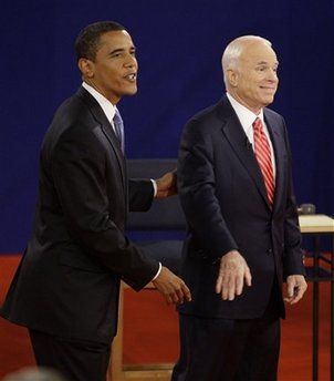 "It is my proposal. It's not Sen. Obama's proposal. It's not President Bush's proposal," McCain said in the opening minutes of a 90-minute debate precisely four weeks before Election Day. McCain's Democratic rival, Barack Obama, said the current economic crisis was the "final verdict on the failed economic policies of the last eight years" that President Bush pursued and were "supported by Sen. McCain." The two rivals debated on a stage at Belmont University in a race that has lately favored Obama, both in national polls and in surveys in pivotal battleground states. The audience was selected by Gallup, the polling organization, and was split three ways among voters leaning toward McCain, those leaning toward Obama and those undecided. Tom Brokaw of NBC, the moderator, screened their questions and also chose others that had been submitted online. The two men also competed to demonstrate their qualifications as reformers at a time voters are clamoring for change. McCain accused Obama of being the Senate's second-highest recipient of donations from individuals at Fannie Mae and Freddie Mac, the two now-disgraced mortgage industry giants. "There were some of us who stood up against this," McCain said. "There were others who took a hike." Obama shot back that McCain's campaign manager, Rick Davis, has a stake in a Washington lobbying firm that received thousands of dollars a month from Freddie Mac until recently. Pivoting quickly to show his concern with members of the audience listening from a few feet away, he said, "You're not interested in politicians pointing fingers. You're interested in the impact on you." |