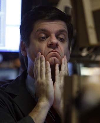 Updated: 2008-10-08 10:26 ![]() A trader works on the floor of the New York Stock Exchange, October 7, 2008. US stocks slid on Tuesday as a sell-off in financial shares accelerated and fears mounted that the rapidly spreading credit crisis would drag the economy into recession. [Agencies] Dow Jones dives again, credit worries linger