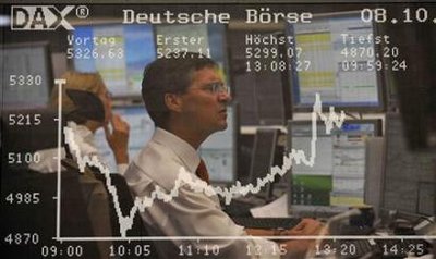 Stocks initially plunged as the rate cut by the Federal Reserve and other big central banks failed to convince investors that credit markets that have been nearly paralyzed for weeks would soon relax. Stocks then moved higher, but some bounceback after the Dow Jones industrials fell 875 points this week was to be expected - the question was whether any optimism was in fact beginning to take hold, or whether the gains were due to bargain-hunting. Many traders had expected that the Fed would eventually come through with a rate cut to help revive the credit markets. The Fed cut interest rates by a half-point, trying to restore confidence in the market and help end the global financial crisis. The central bank said in a statement that the market turmoil posed a further threat to an already shaky economy; it was joined in the rate cut by the European Central Bank, Bank of England, The Bank of Canada, the Swedish Riksbank and the Swiss National Bank. But the market was well aware that interest rate changes take months to work their way through the economy, and while they clearly were happy with the central banks' actions, they were also well aware that in the near term, banks remain highly reluctant to lend because of fears they won't be paid back. That fear, which increased after the failure of Lehman Brothers Holdings Inc. in mid-September, has all but shut down the credit markets, making it increasingly hard for companies and individuals to borrow, and in turn, posing a further threat to the economy. Stocks did draw some support Wednesday from signs that the housing industry - whose troubles set off the series of events leading to the current credit problems - might be faring better than expected. The National Association of Realtors said pending home sales for August jumped unexpectedly, rather than falling 1.8 percent as had been predicted. Pending sales, which reflect signed contracts, rose 7.4 percent in August from an upwardly revised reading of 87 in July. In midmorning trading, the Dow fell 79.01, or 0.84 percent, to 9,368.10. Broader indexes also advanced. The Standard & Poor's 500 index fell 2.14, or 0.21 percent, to 994.09. The Nasdaq composite index was down 1.53, or 0.09 percent, to 1,753.35. |