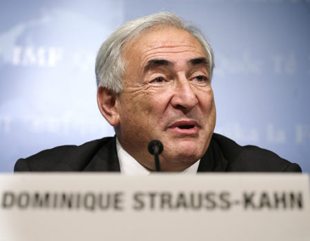 International Monetary Fund Managing Director Dominique Strauss-Kahn speaks at a news conference of the annual IMF-World Bank meeting in Washington October 11, 2008. Finance leaders from the IMF's 185 member countries on Saturday endorsed a plan announced by major economies to chart a course out of the credit crisis. [Agencies]